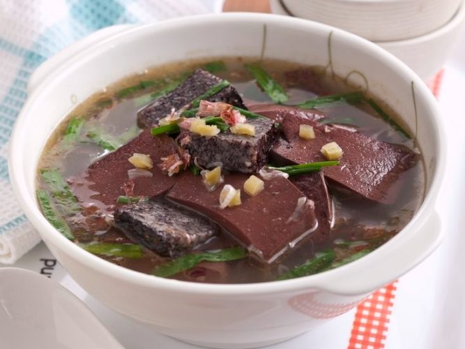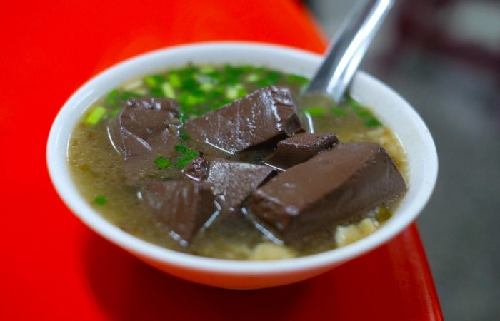 A:完全不行(豬血是動物性食材)。素食者可試蔬菜湯,但風味不同(豬血湯的精髓在豬血本身)。我有朋友試過用菇類替代,效果差超多(不推薦)。