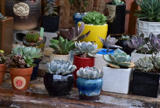 3. 「多肉植物拼盤」 :不同品種需光/水性不同,硬塞一盆遲早死一片。 分開買 雖然貴點但活得久。